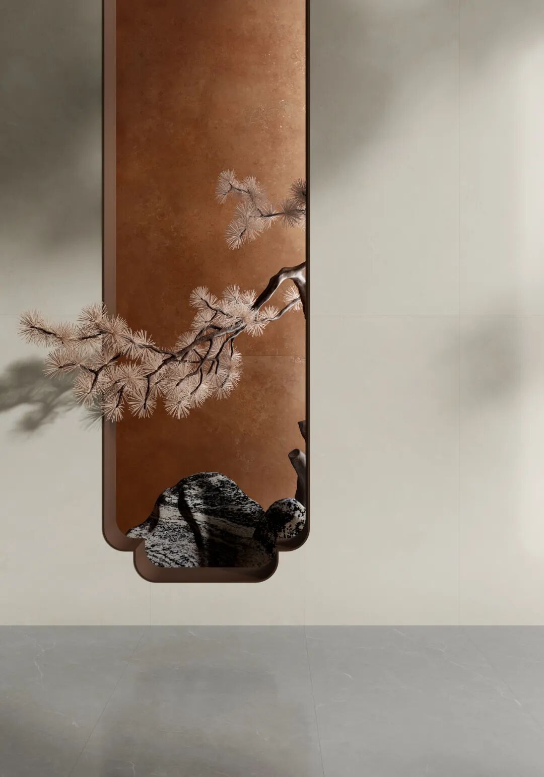 靈感溯源:系列設(shè)計(jì)題材源于宋代五大名品——玉、石、錦、畫、木,將古典風(fēng)物化為現(xiàn)代磚面紋理。