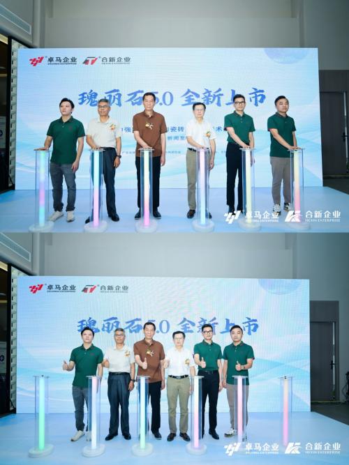 在萬(wàn)眾矚目中,活動(dòng)迎來(lái)了最具儀式感的環(huán)節(jié)——“瑰麗石5.0”新品啟動(dòng)儀式?。一眾主禮嘉賓共同登臺(tái),在全場(chǎng)倒數(shù)聲中,點(diǎn)亮象征技術(shù)突破與產(chǎn)業(yè)未來(lái)的啟動(dòng)燈柱,宣告這一全球首創(chuàng)陶瓷磚“瑰麗石5.0”新品正式面市。