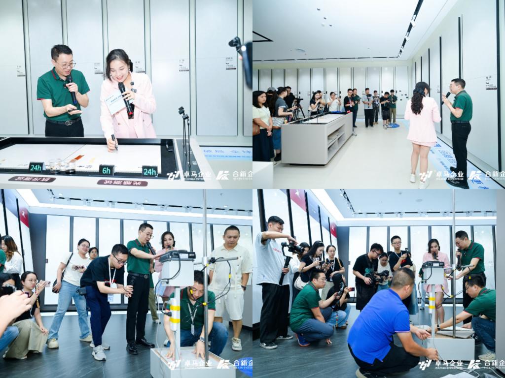 為了讓現(xiàn)場(chǎng)嘉賓與線上觀眾更直觀感受新品的“硬核實(shí)力”,本次發(fā)布會(huì)特別設(shè)置了??“網(wǎng)易家居探展直播”環(huán)節(jié),由潮探傳媒董事長(zhǎng)、網(wǎng)易新聞家居|瓷磚總經(jīng)理張英梅YOYO與卓馬集團(tuán)銷售總經(jīng)理招錦欣聯(lián)合帶隊(duì),通過(guò)直播鏡頭帶領(lǐng)線上線下觀眾“云逛展”。