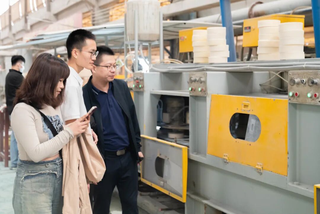 活動的第一站,設計師團隊前往金舵瓷磚佛山智造生產(chǎn)基地——天緯生產(chǎn)中心,實地探訪一塊高品質瓷磚的誕生全過程。