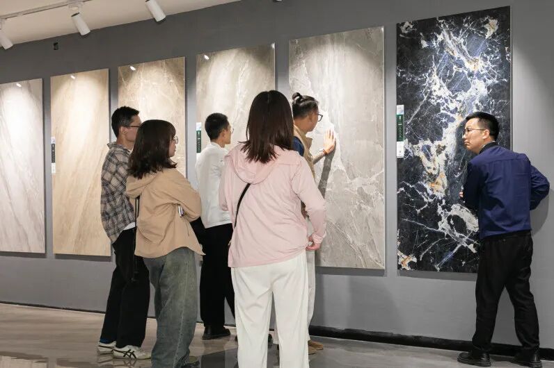當步入產(chǎn)品鑒賞區(qū),設計師們瞬間被金舵瓷磚豐富的產(chǎn)品矩陣所吸引。從通透明亮的尚韻石系列到質感高級的自然石系列,從色彩純粹的秘色系列到復刻自然的原素系列,金舵產(chǎn)品所呈現(xiàn)出的豐富性、表現(xiàn)力與美學價值,引發(fā)了設計師們的濃厚興趣。