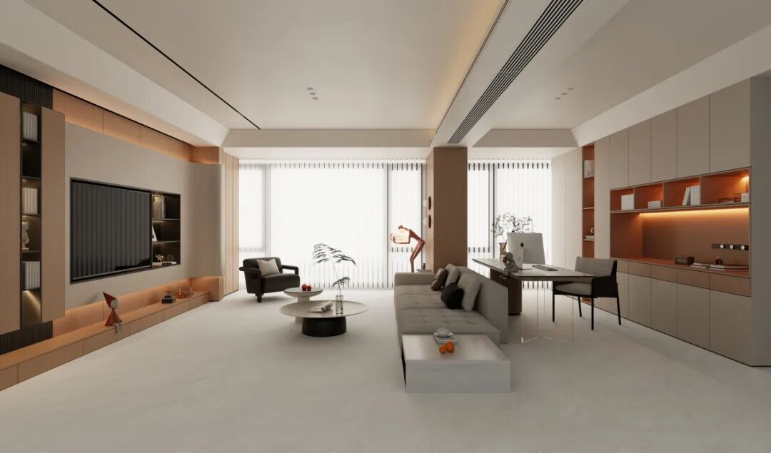 珍珠絨系列涵蓋600×1200mm/750×1500mm/ 900x1800mm三種規(guī)格,子母配套設(shè)計(jì),可靈活組合鋪貼,極大增強(qiáng)了空間設(shè)計(jì)的層次感與整體性。灰、白、黃經(jīng)典色系搭配細(xì)膩紋理適配現(xiàn)代簡(jiǎn)約、意式輕奢、新中式等多元風(fēng)格,可滿足地面通鋪、墻面裝飾、背景墻與玄關(guān)造型多種裝修需求。